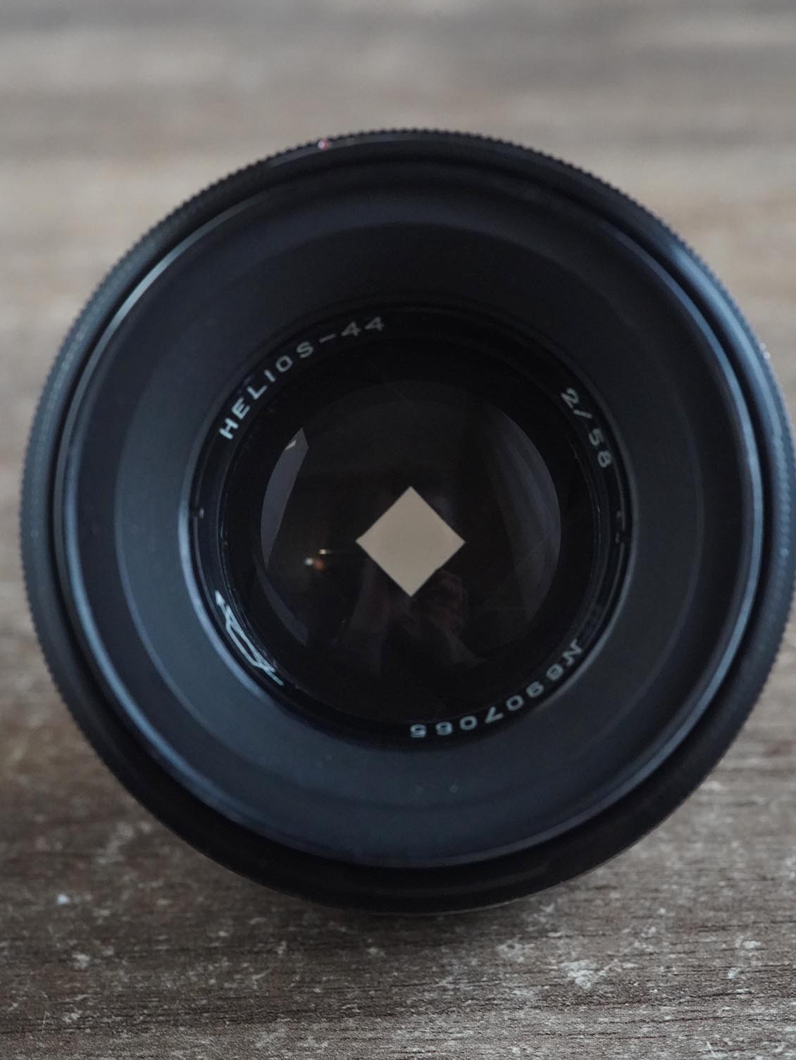square-swirly Helios-44 2/58mm black lacquer KMZ №6907065 M42 final mod